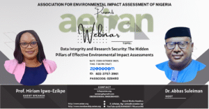 Change your cover photoUpload Change your cover photoUpload AEIAN NG This user account status is Approved About About Posts Posts Comments Comments 2025 AEIAN 9TH ANNUAL CONFERENCE AND AGM 2 months ago in: Conference, Events no comments Use of Artificial Intelligence (AI) Approach to Enhance Impact Assessment (IA) Process 2 months ago in: Events, Webiner no comments Data Integrity and Research Security: The Hidden Pillars of Effective Environmental Impact Assessments 2 months ago in: Events, Webiner no comments Mitigating the Environmental Impact of Human Activity: The Triple Helix Approach 4 months ago in: Events, Webiner no comments The Political Ecology of Imapct Assessment : A Critical Analysis of the Nigerian Practice Ecosystem 4 months ago in: Events, Webiner no comments Hydrogeological Investigations in Environmental Impact Assessments (held on 22nd August 2025) 5 months ago in: Events, Webiner no comments FREE WEBINAER: Psycho-Social Impact Assessment (PSIA) 1 year ago in: Events, Group Discussion, Uncategorized, Webiner no comments 2024 WORLD MANGROVE DAY. 2 years ago in: Events no comments WORLD ENVIRONMENTAL DAY (WED) 2024. Date : Jun 5, 2024 2 years ago in: Events, Group Discussion, Meeting no comments IAIA 2024 AT DUBLIN 2 years ago in: Conference, Events no comments load more posts